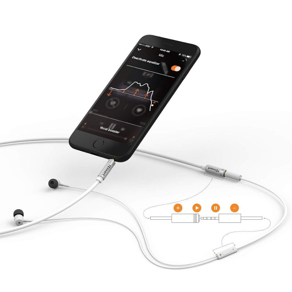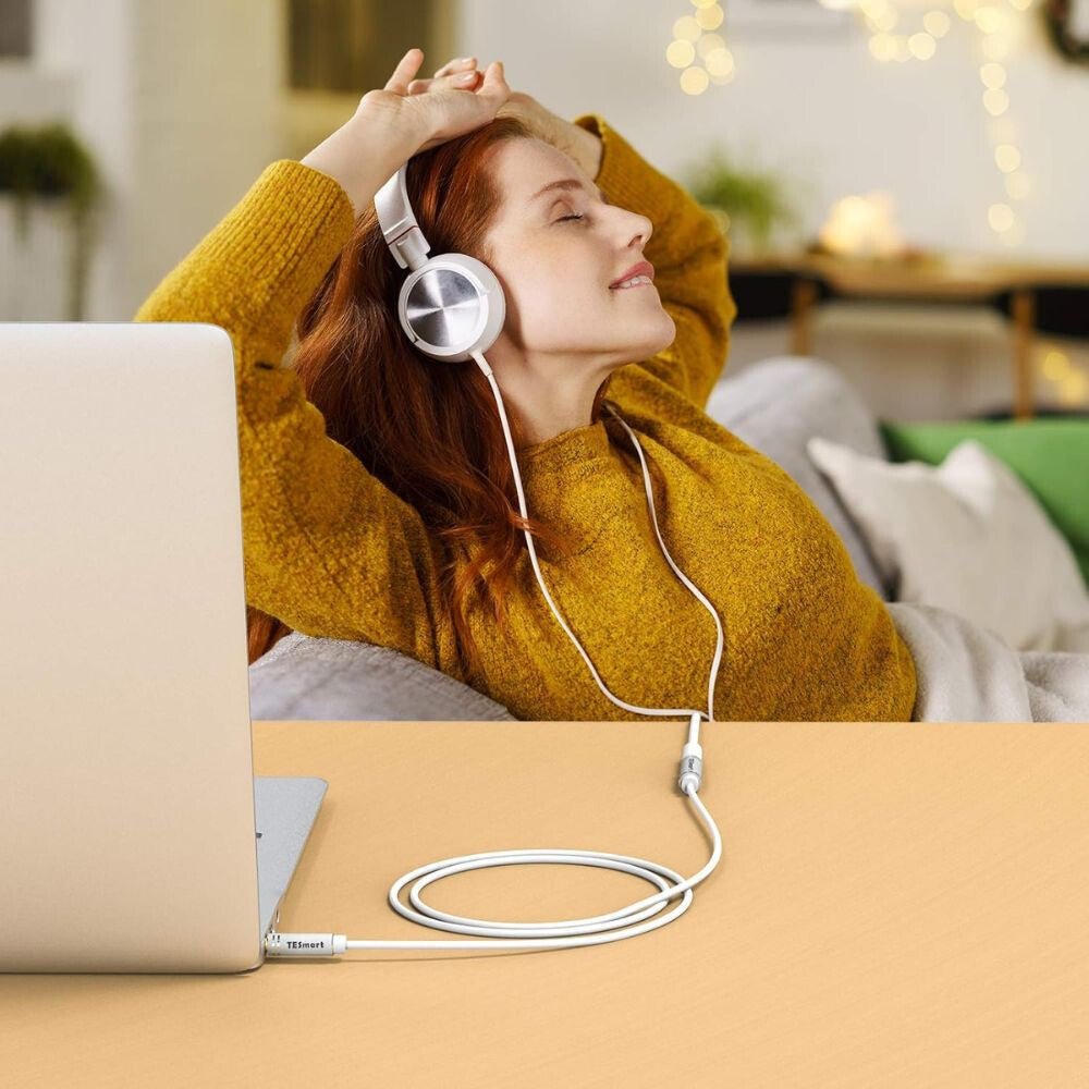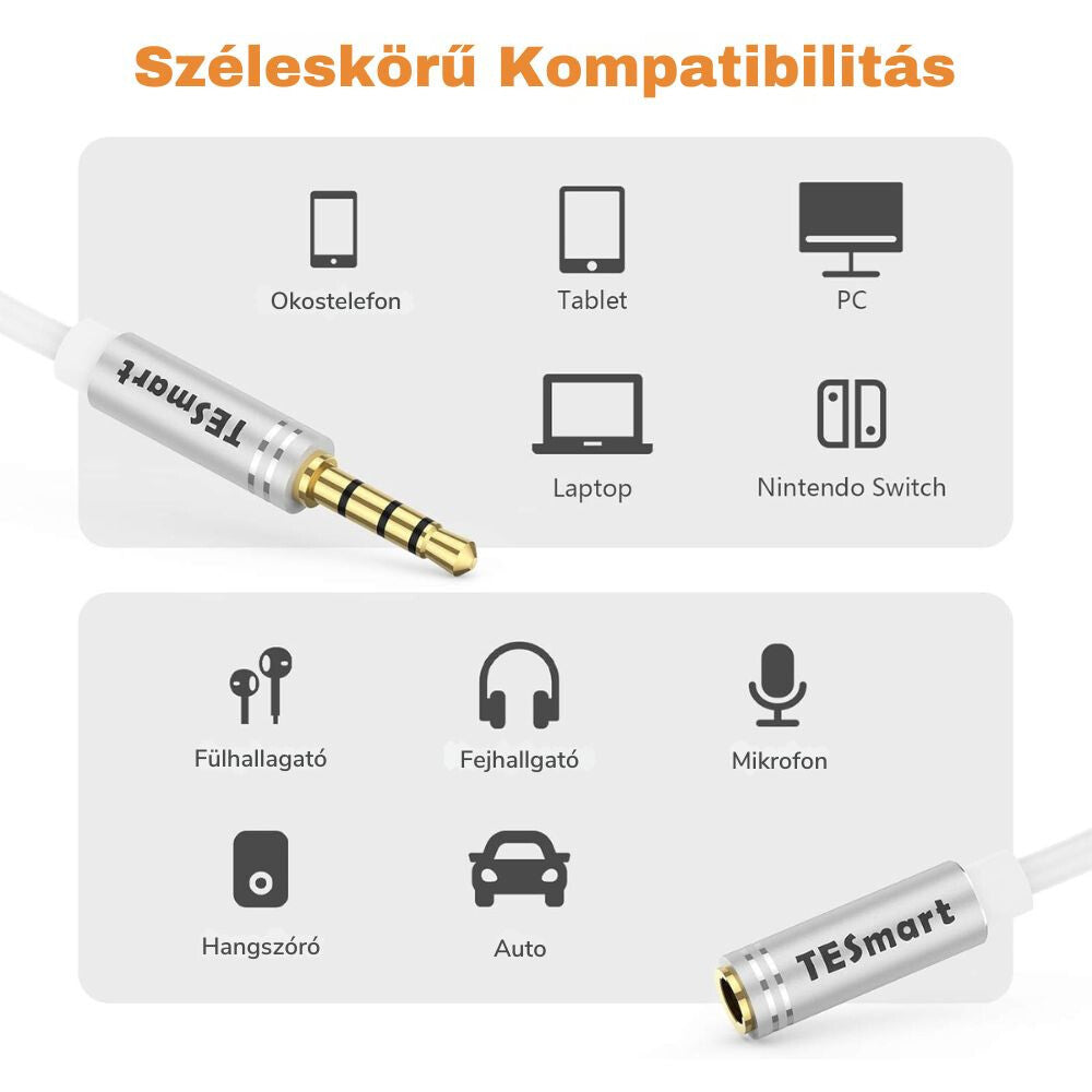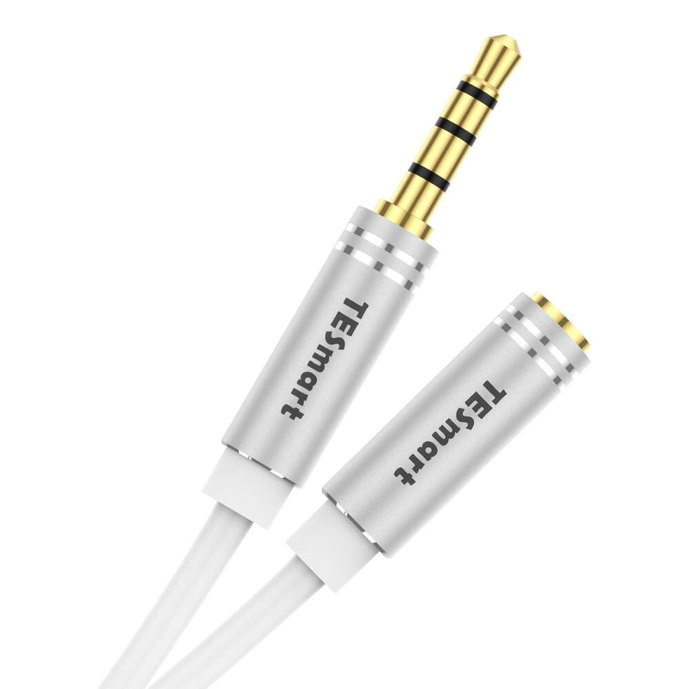 TESmart 3,5 mm TRRS Predlžovací Kábel s Mikrofónom – Pre Telefón a PC (2,5 m, Biela)