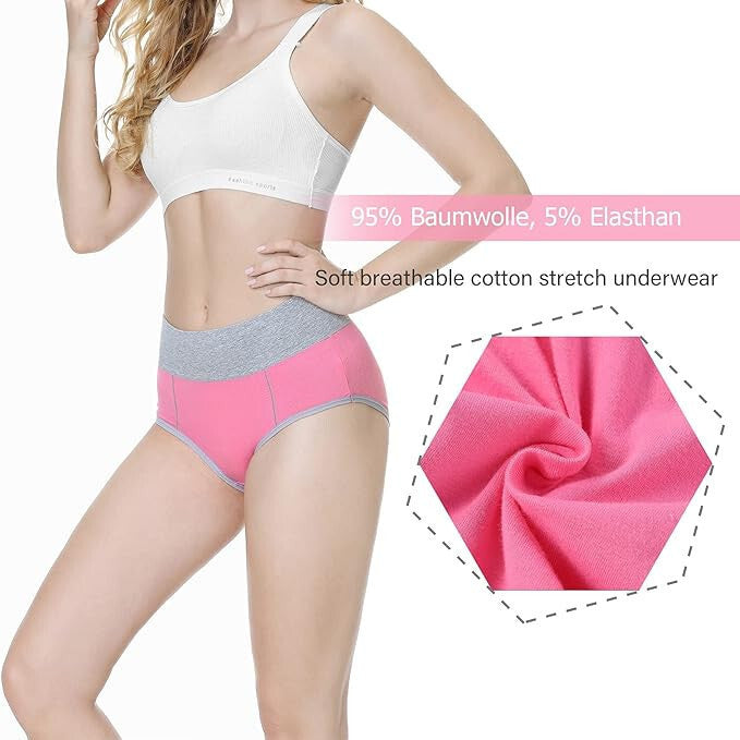Vysoký pás spodnej bielizne: Dámska spodná bielizeň s vysokým pásom v balení po 5 kusoch, vyrobená z bavlny a elastických vlákien, ktorá sa nevyťahuje a nevytvára žmolky.