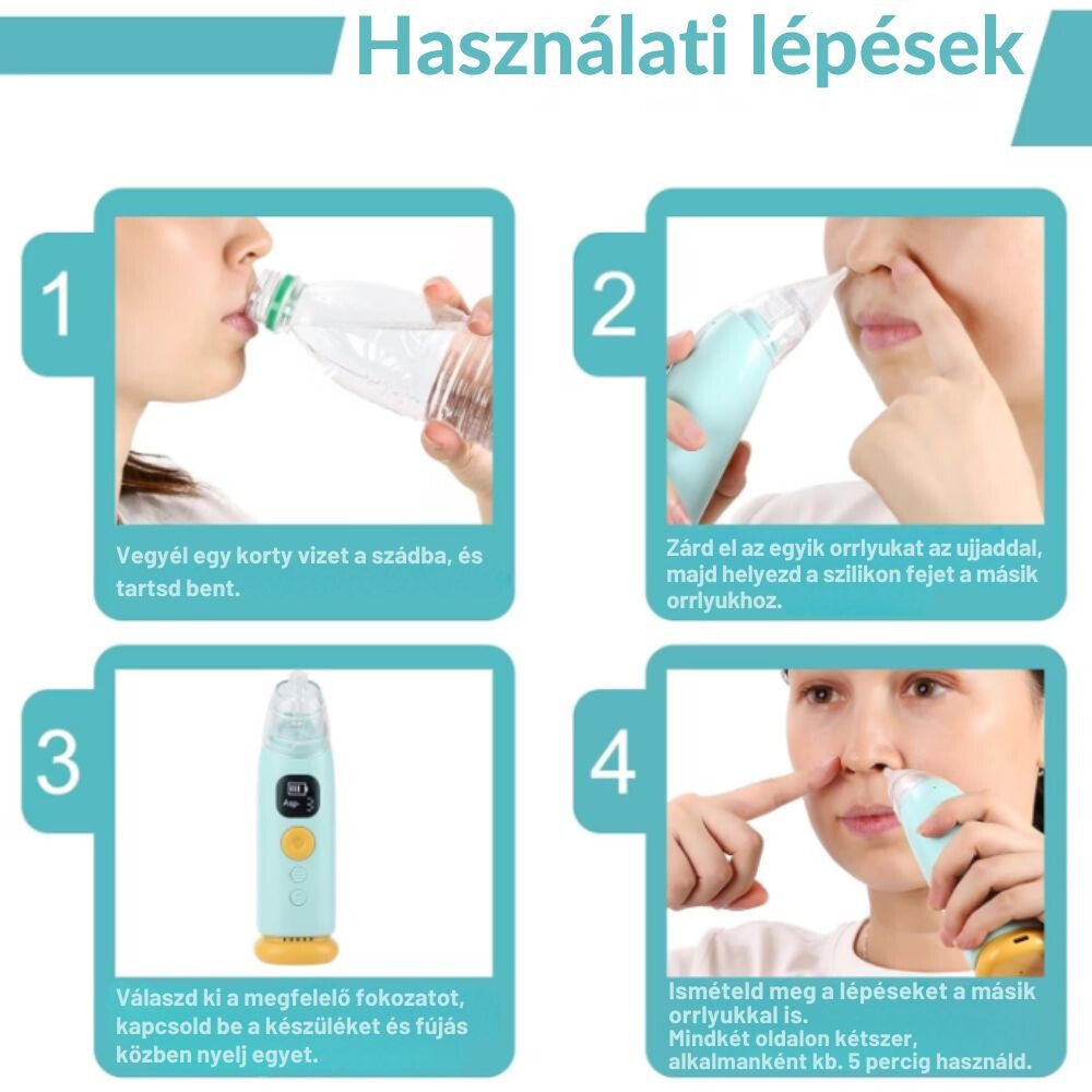 - Elektrický odsávač hlienu pre bábätká ponúka moderné, bezpečné a šetrné riešenie na zmiernenie upchatého nosa u dojčiat a malých detí. Vďaka účinnej saciej sile rýchlo odstraňuje nosný sekrét, pričom mäkké silikónové nástavce poskytujú maximálne pohodlie a bezpečnosť aj tým najmenším. Ideálna voľba pri prechladnutí, alergii alebo nádche.
