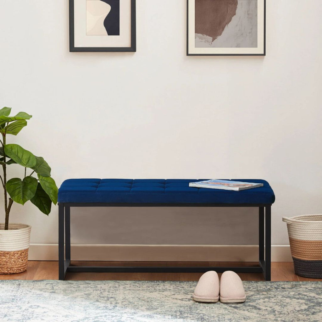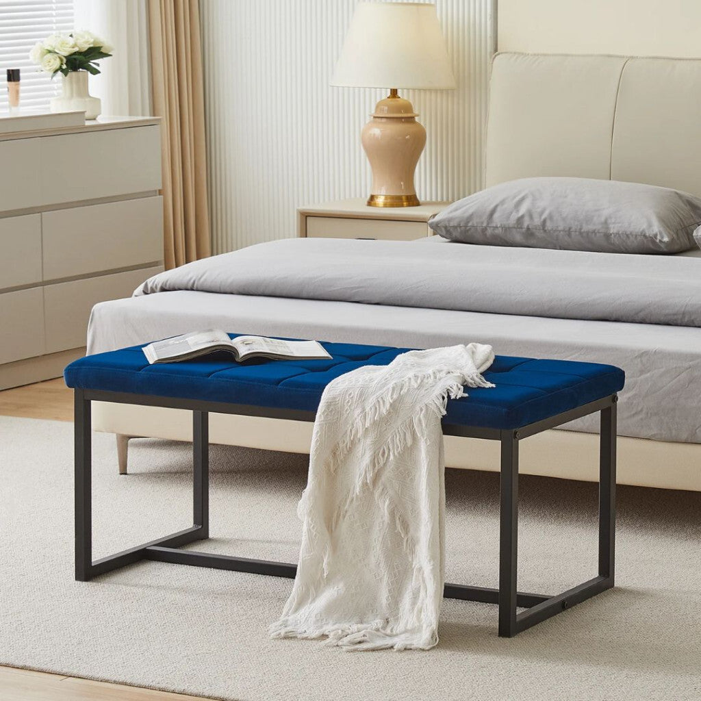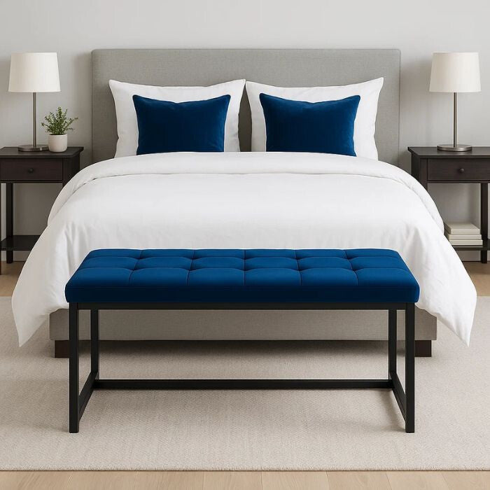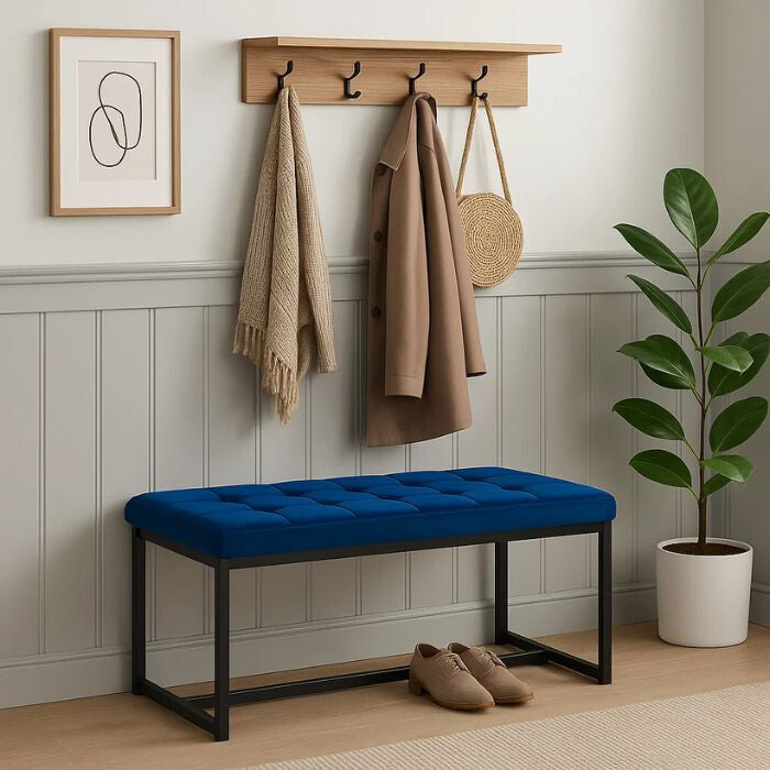 - Wyn Prémium Bársony Ülőpad – Királykék, Modern Fém Lábas Pad Előtérbe és Ágyvéghez