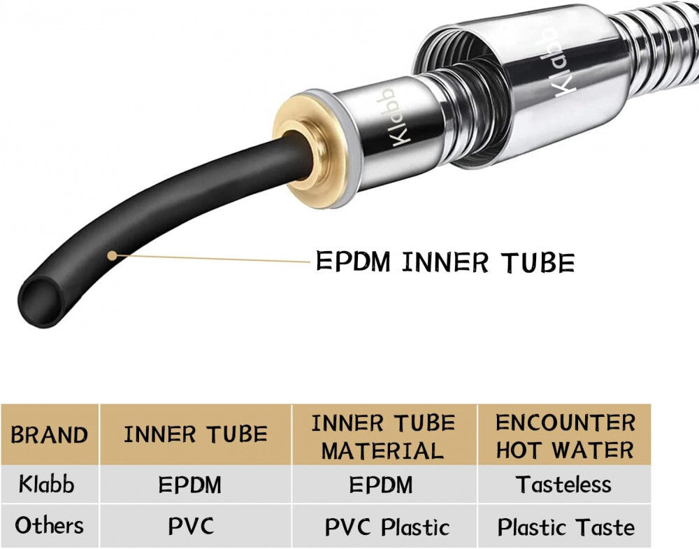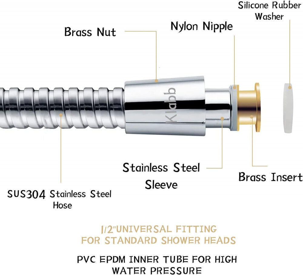 - Nerezová sprchová hadica dĺžky 1,5 m je ideálnou voľbou, ak hľadáte spoľahlivé, pohodlné a dlhodobo odolné riešenie pre každodenné sprchovanie. Je vyrobená z vysoko kvalitnej nerezovej ocele 304, ktorá odoláva korózii, vodnému kameňu a každodennému používaniu. Flexibilná konštrukcia hadice zabezpečuje, že sa neprelomí ani nezamotáva, takže je vždy pohodlná na používanie.