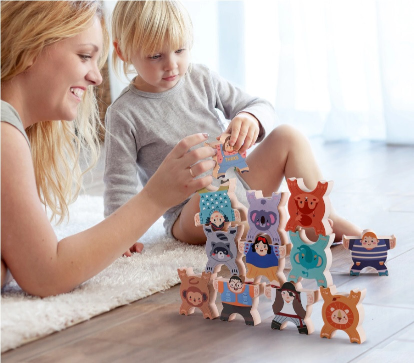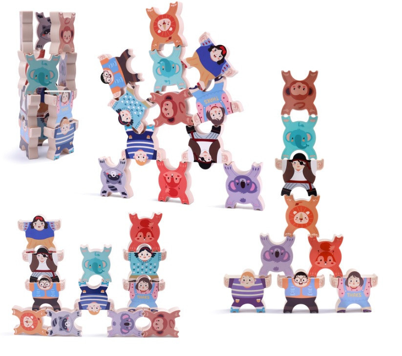Hračka je navrhnutá tak, aby dieťa mohlo jednotlivé prvky ľahko skladať na seba, čím posilňuje zmysel pre rovnováhu a sústredenie. Rozmanitosť prvkov v tvare zvieratiek a bábik ponúka vzrušujúci a nový zážitok pri každej hre s nimi. Rôzne postavičky a farby tiež pomáhajú dieťaťu naučiť sa rozlišovať tvary a farby.