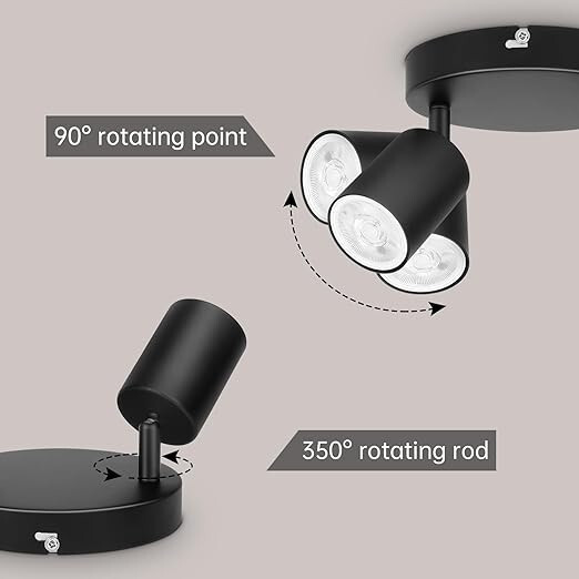 Toto kuchynské stropné svietidlo sa dá otáčať o 350 stupňov a nakláňať hore a dole o 90 stupňov. Otáčaním každého držiaka lampy je možné flexibilne nastaviť uhol osvetlenia v ľubovoľnom smere.