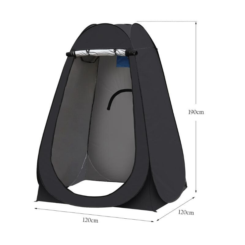 THE prenosný vonkajší prebaľovací stan ideálne vytvoriť súkromný priestor na kempovanie, plážovanie a vonkajšie akcie. So silnou konštrukciou z oceľového drôtu a UV odolným, vodeodolným polyesterovým poťahom poskytuje ochranu a stabilitu. Jeho rozmery sú 120 x 120 x 190 cm. Pohodlne sa používa, ľahko sa skladá a prenáša.