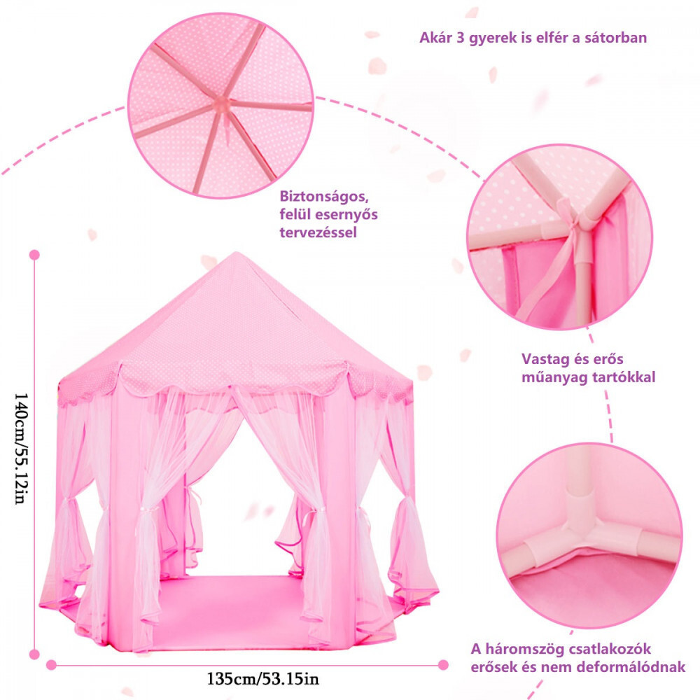 BDream Detský stan, stan na hranie do interiéru aj exteriéru, princezná ružová 140x135 cm