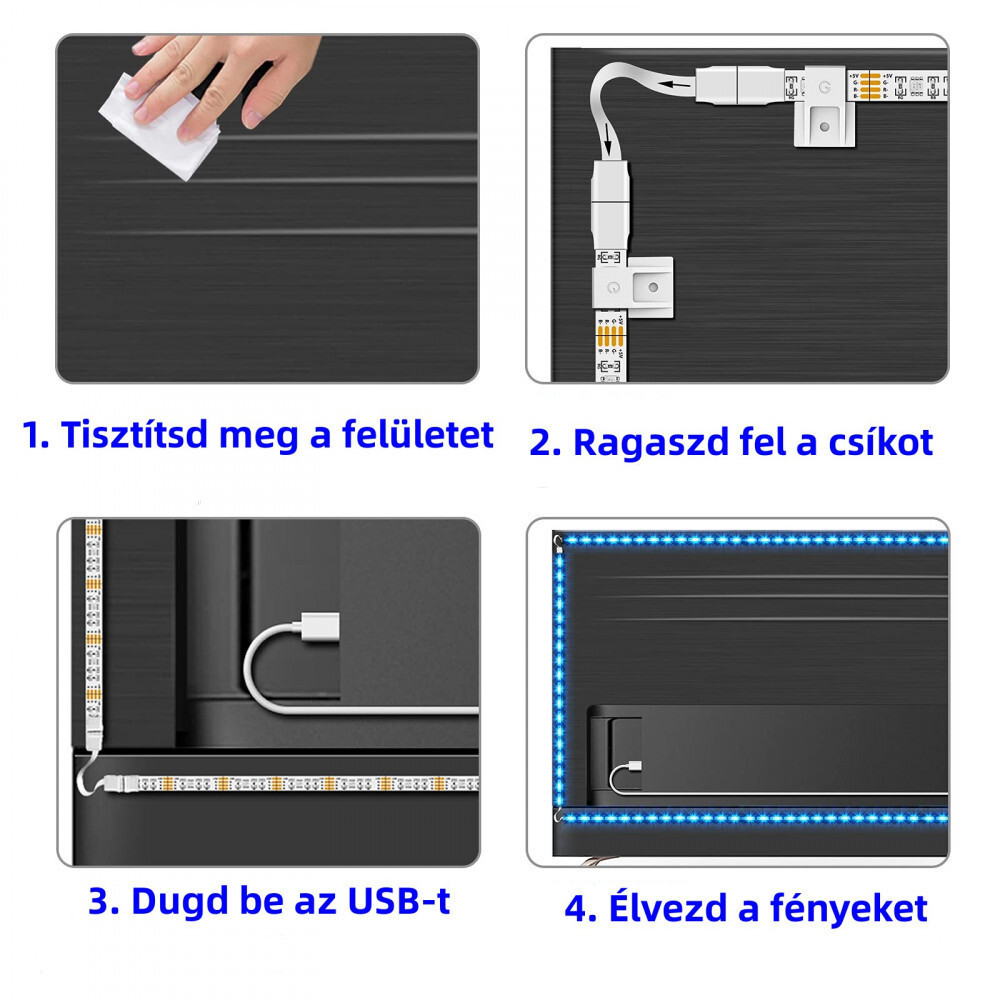 Súčasťou balenia je LED pásik (4 kusy pásikov s dĺžkou 0, 5metra), ktorý sa perfektne hodí k televízorom a monitorom rôznych veľkostí.