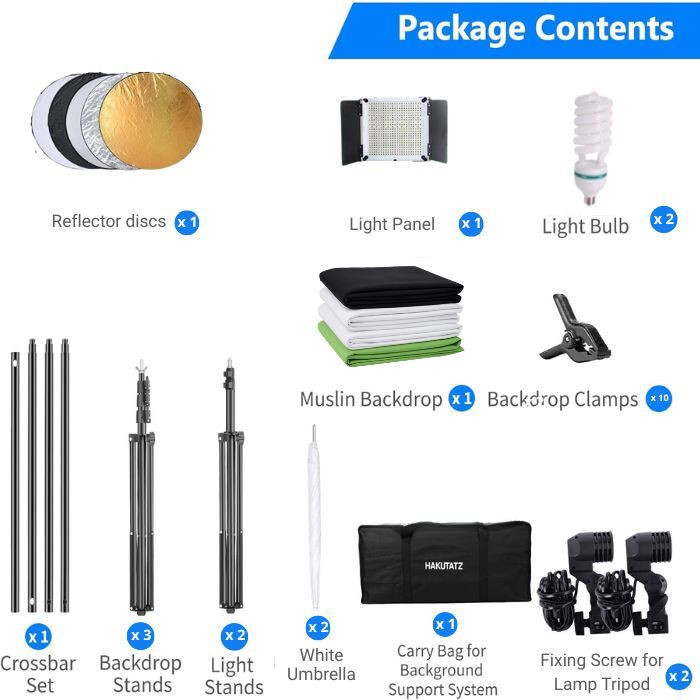 Profesionálna štúdiová svetelná sada Hakutatz so systémom pozadia a prenosným puzdrom