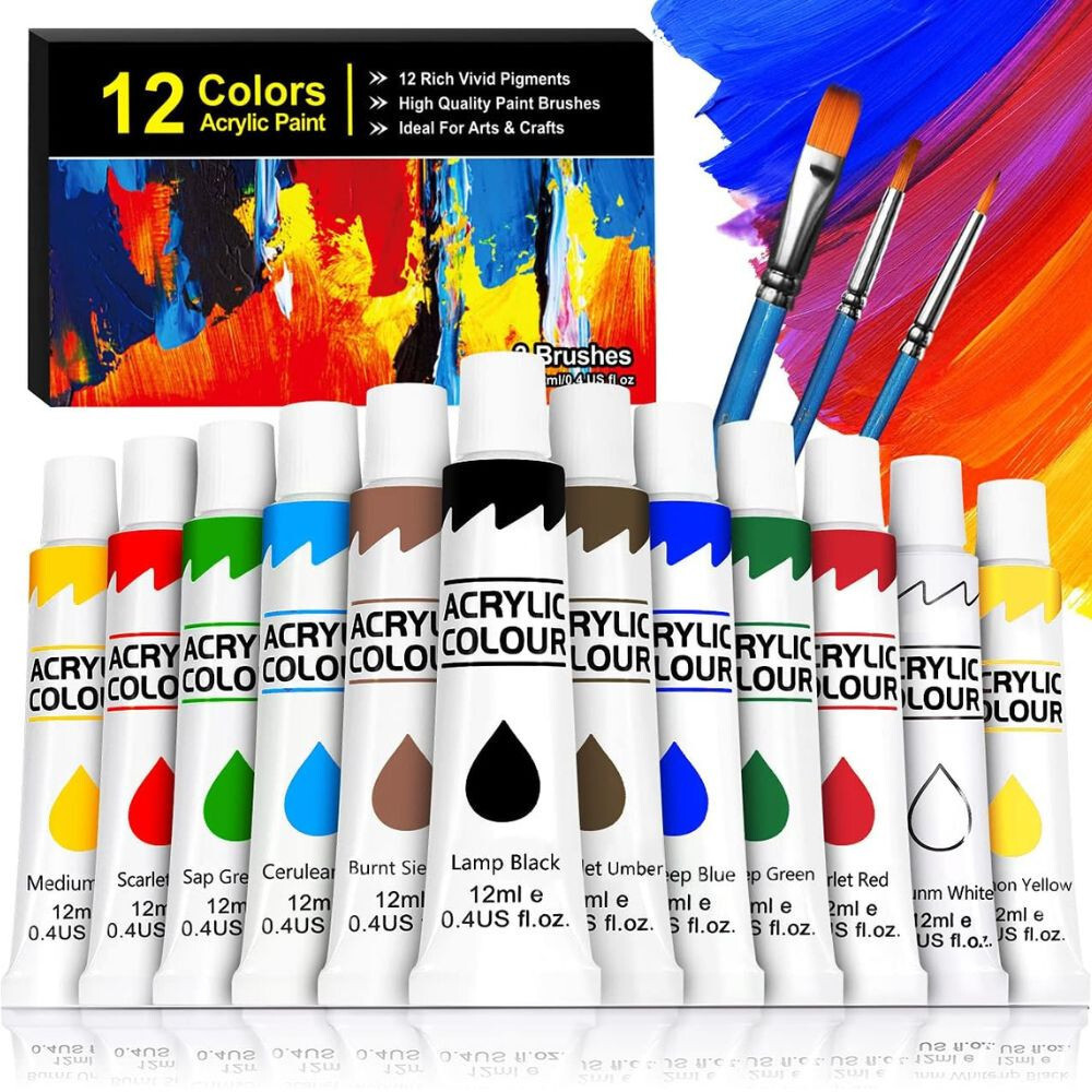 12-dielna sada akrylových farieb Gifort – živé farby, vynikajúca kvalita, pre kreatívnu tvorbu
