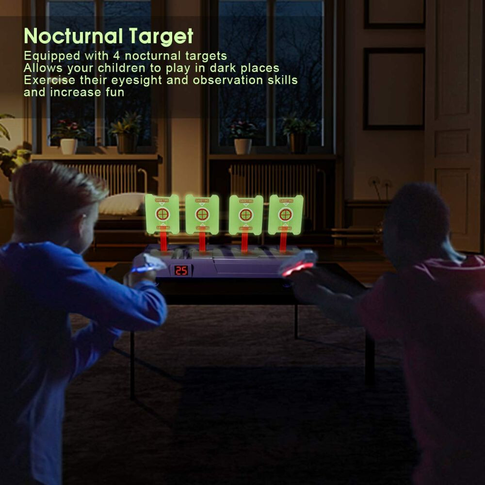 Keď zasiahnete cieľ, vydáva zvukové, svetelné a tieňové efekty, ktoré simulujú streľbu, aposkytujú tak realistický herný zážitok. Hra je vhodná na rodinné stretnutia, večierky, tímové hry alebo dokonca vonku.