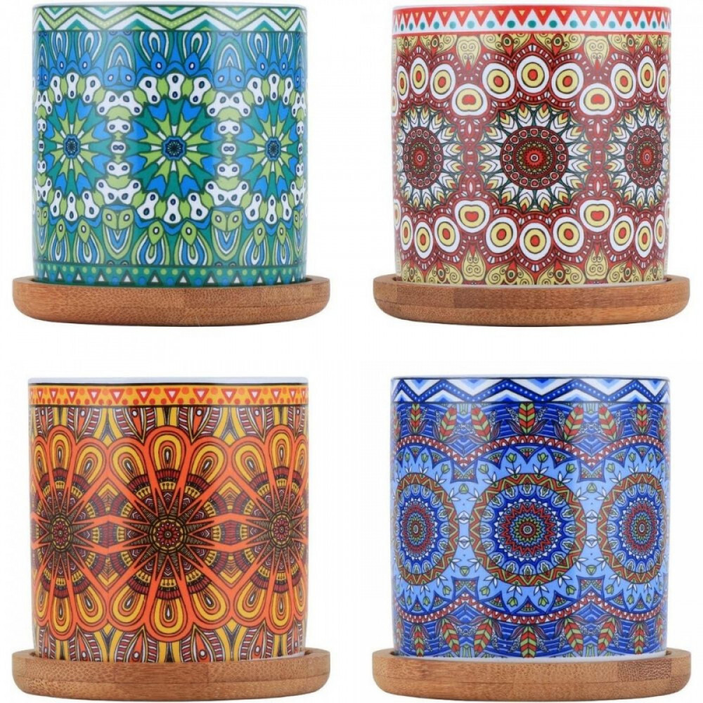 Sada 4 keramických kvetináčov s mandalovým vzorom