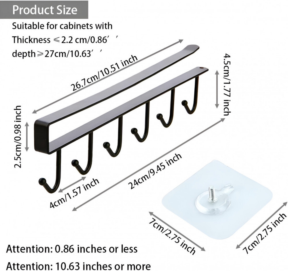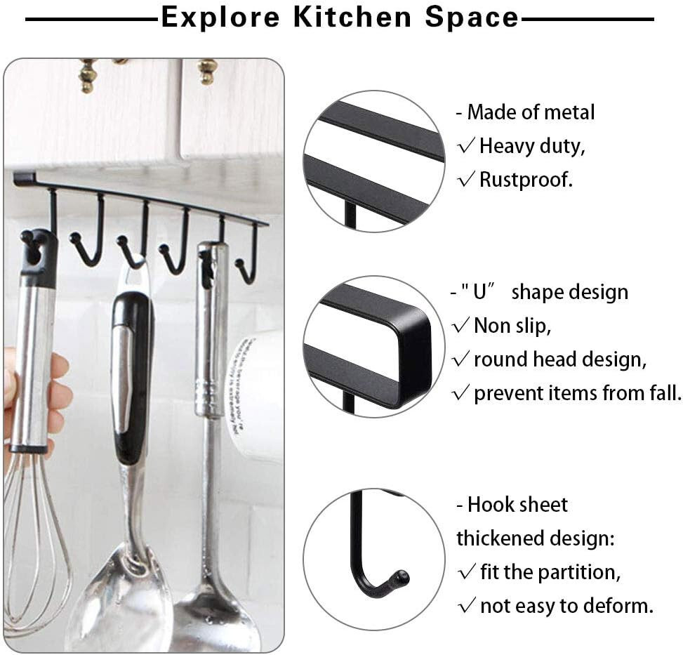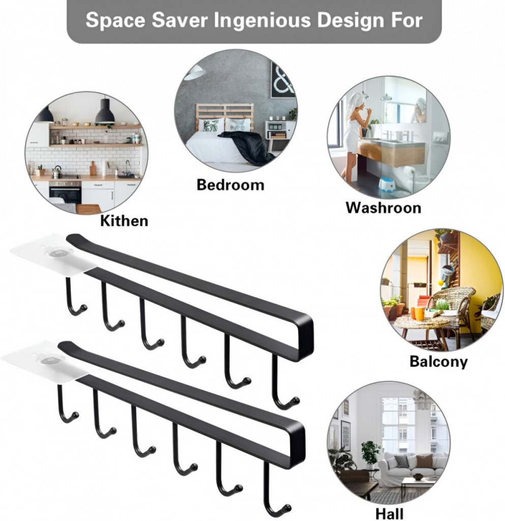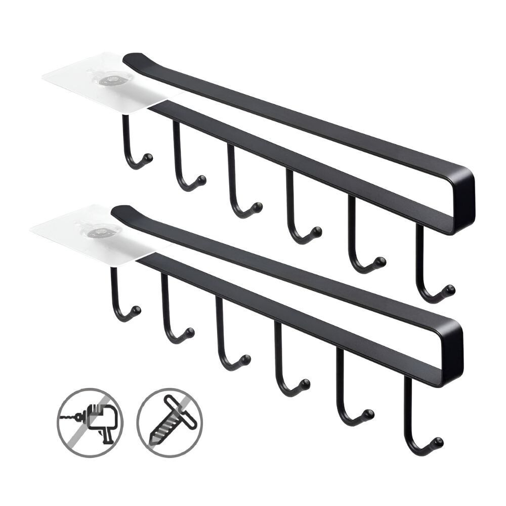 Závesný kuchynský háčik LikeSun bez vŕtania, držiak na hrnčeky 2 ks (čierny)