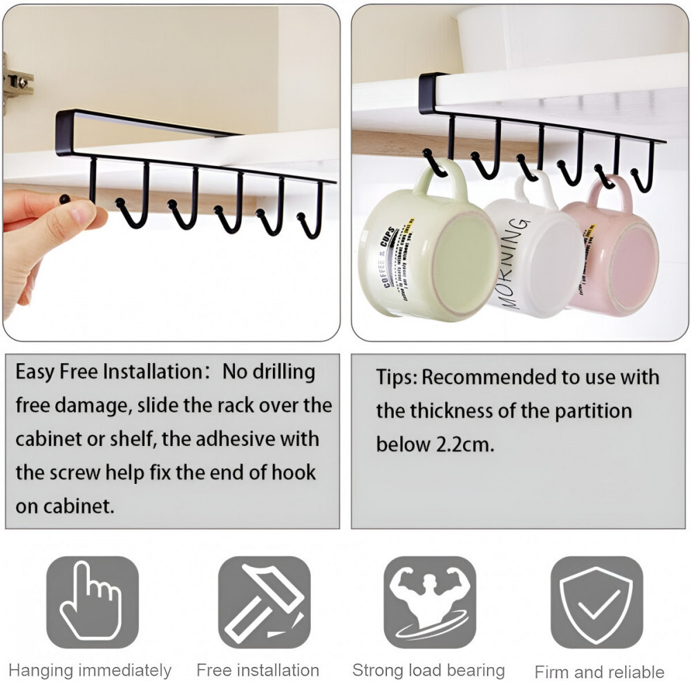 Odporúčame ho každému, kto chce využiť priestor pod skrinkami a hľadá praktické a priestorovo úsporné riešenie na odloženie hrnčekov alebo šálok.