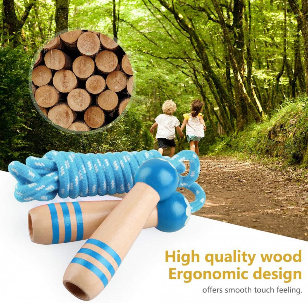 Ľahké, ergonomické drevené rukoväte a odolné bavlnené lano pre bezpečné a pohodlné skákanie