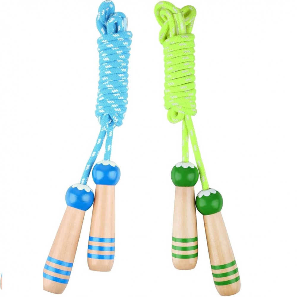 Dvojdielna sada detských švihadiel Hianjoo je ideálnou voľbou pre aktívny pohyb, hru a cvičenie detí, sergonomickou drevenou rukoväťou a nastaviteľným bavlneným lanom pre pohodlné používanie.