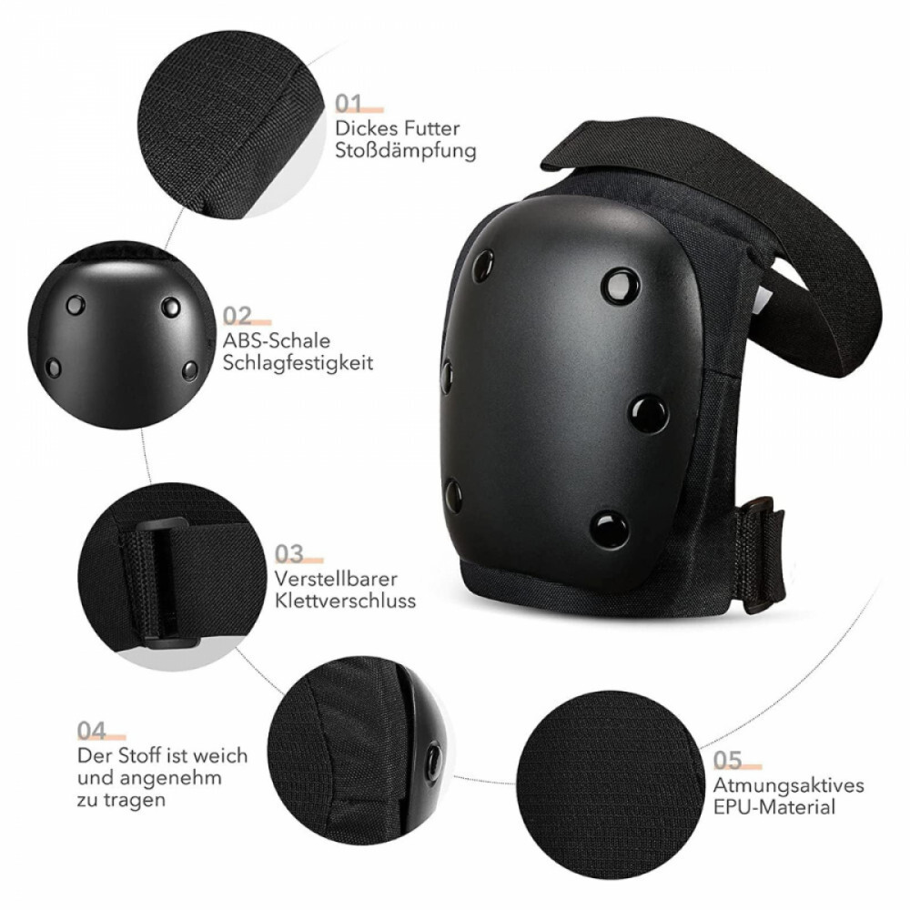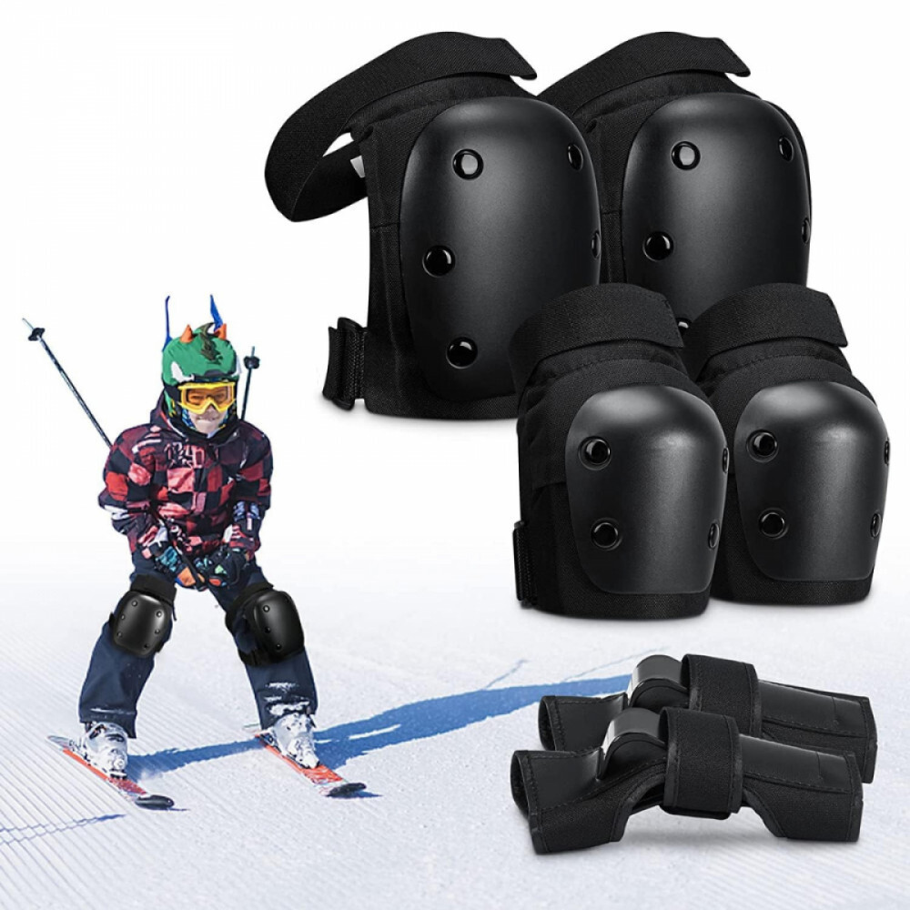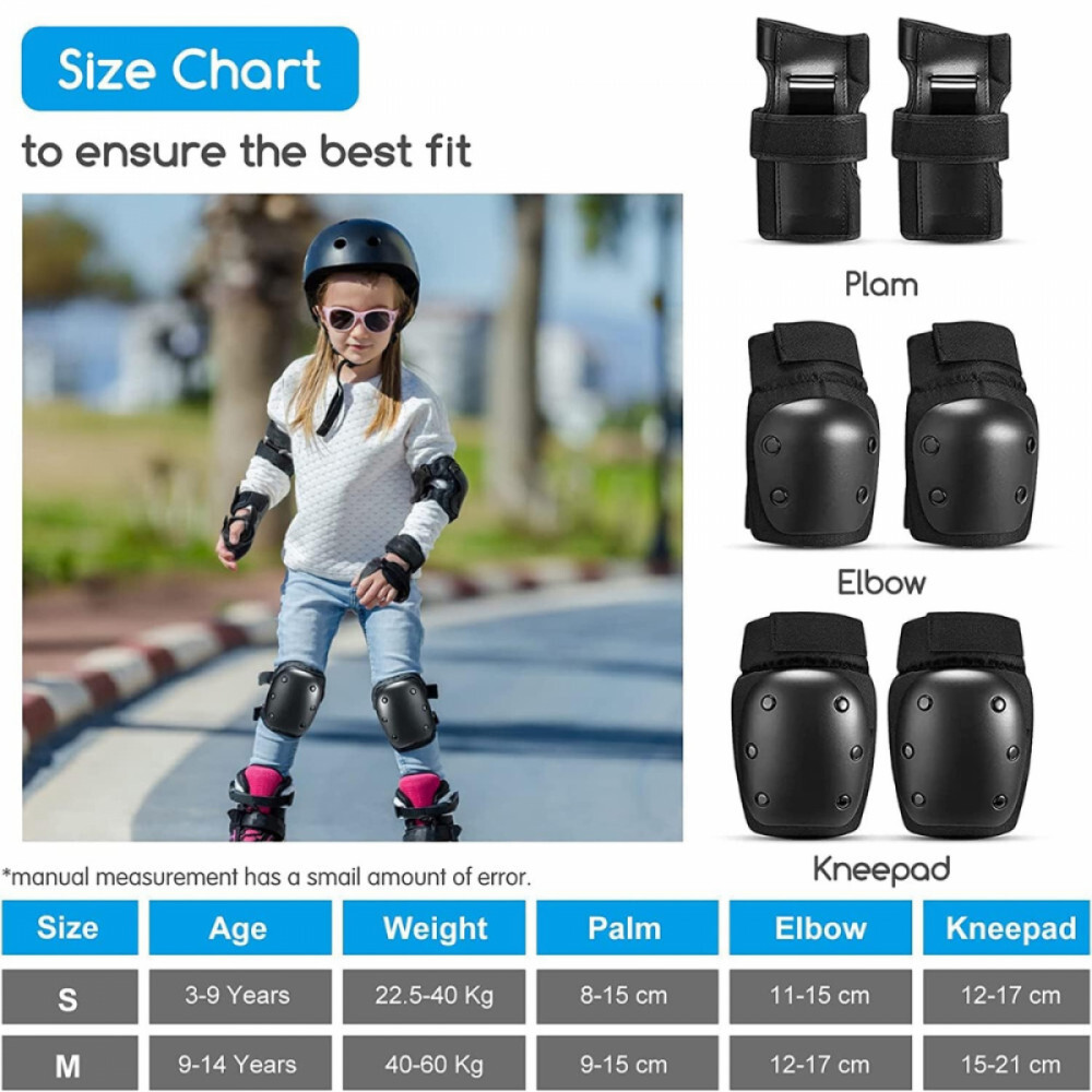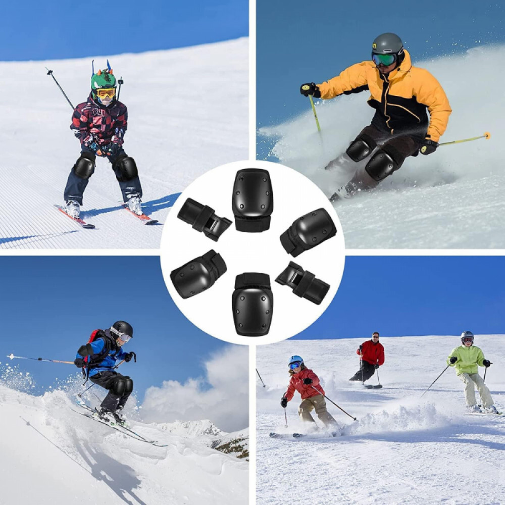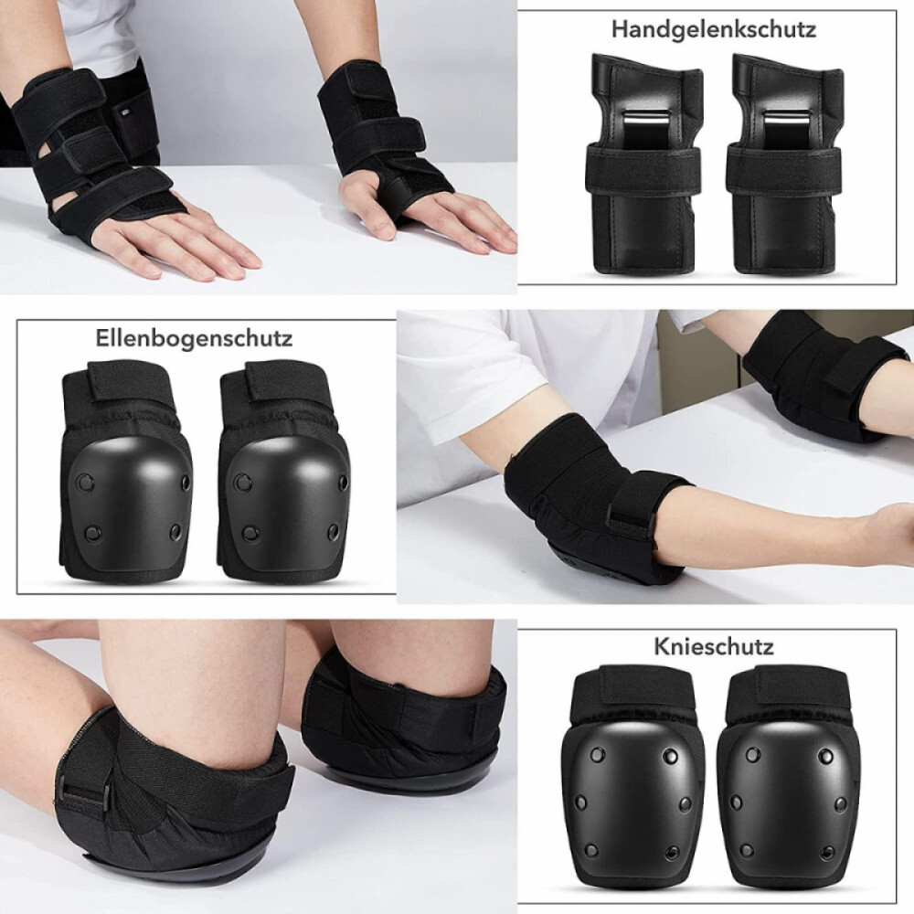 Tento 6-dielny čierny ochranný odev je ideálnou voľbou na korčuľovanie, skateboarding, jazdu na kolieskových korčuliach, lyžovanie a iné extrémne športy. Sada obsahuje chrániče lakťov, kolien a zápästí, ktoré poskytujú plnú ochranu aj pri najväčšej záťaži vďaka ich nárazuvzdornému, pohodlnému a nastaviteľnému dizajnu. Je vyrobený z odolného materiálu a dodáva sa s praktickým úložným vreckom, takže si ho môžete vziať kedykoľvek so sebou.