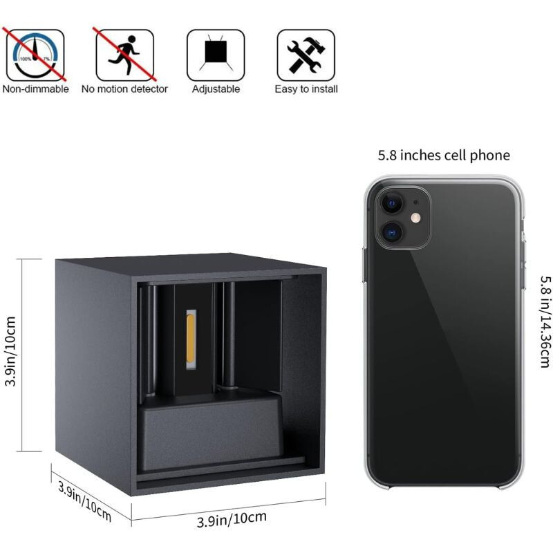 K-Bright LED vonkajšia nástenná lampa 12W, IP65 vodeodolná, antracitová, teplé biele svetlo - 1 ks