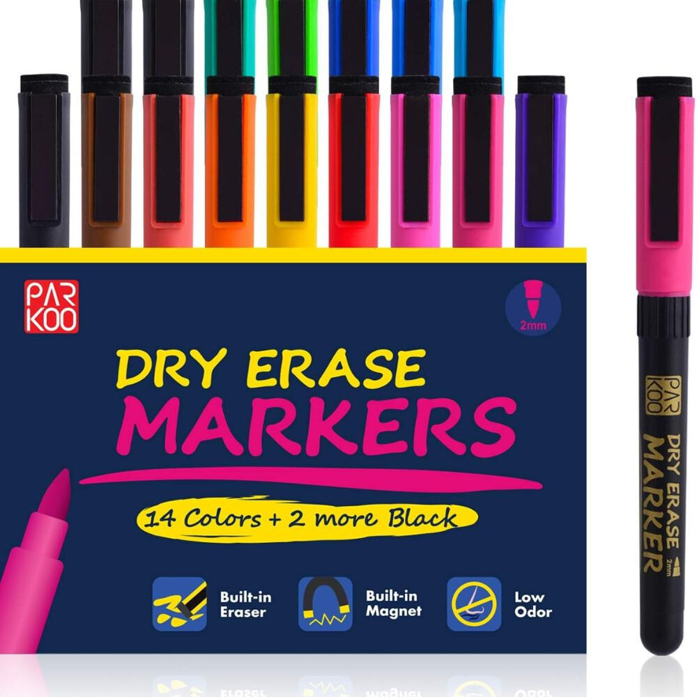 Sada magnetických popisovačov na bielu tabuľu ParKoo 14+2 ks – viacfarebné, odolné písacie pero